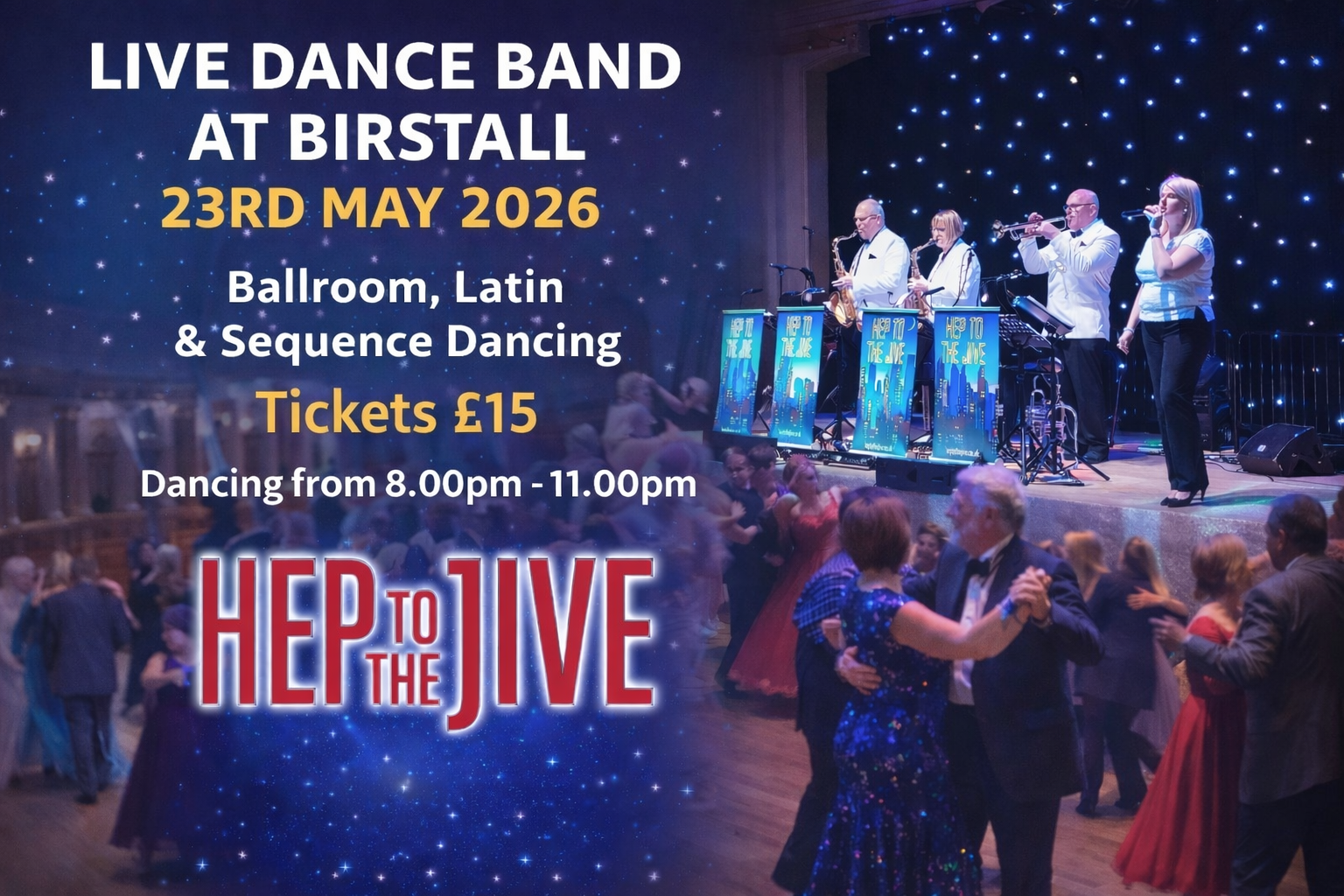 We are delighted to welcome the popular live band Hep to the Jive, bringing you a wonderful mix of Ballroom, Latin, and Sequence dancing—perfect for a great night out on the floor.